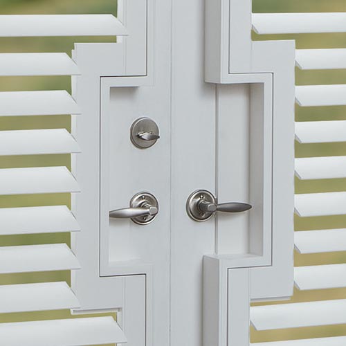 When covering the doors of your home for light control, privacy & energy efficiency, you need to ensure that the design will accommodate for door handle function. The door handles, such as levers or knobs, must be considered an important aspect in custom coverage. With plantation shutters, from the NewStyle® collection, cut-outs are a popular option, available in both rectangular or curved shapes.