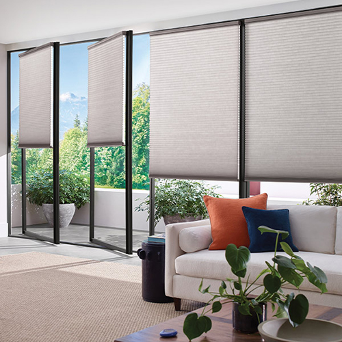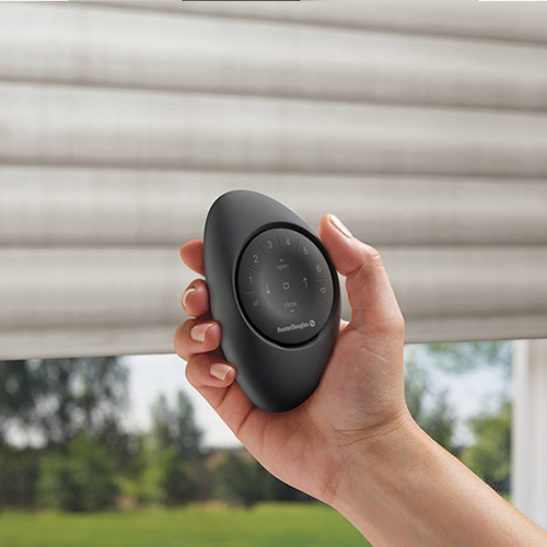 Motorized window shades bring convenience, comfort, and modern smart-home control to your windows. Adjust your shades with a remote, smartphone app, or voice command using Hunter Douglas PowerView® Automation. Automated window treatments can also be scheduled to adjust throughout the day, helping regulate light, privacy, and indoor temperatures effortlessly.